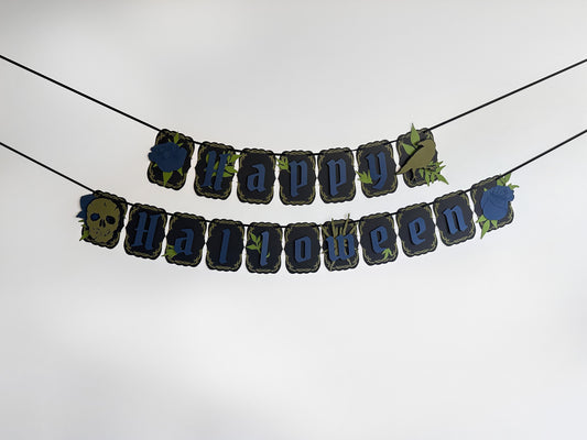Blue & Black Gothic Halloween Banner | Goth Halloween Banner| Halloween Decoration | Spooky Event | Gothic Crow | Goth Birthday | Skull