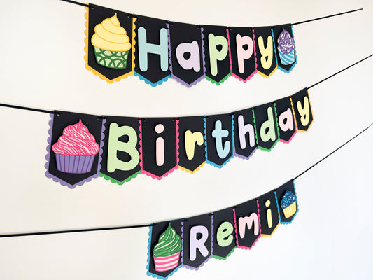 Cupcake Party Banner Dark | Cupcake Garland | Cupcake Birthday | Cupcake Decorations