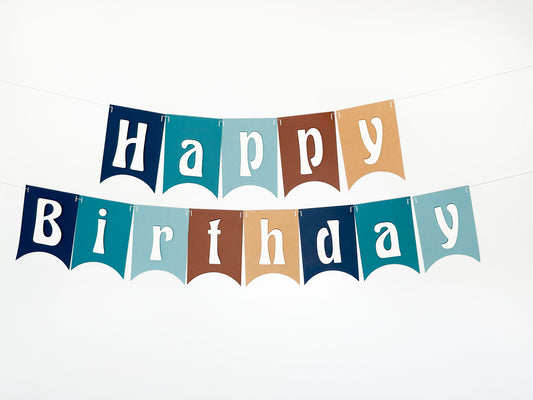 Blue and Brown Party Banner | Boy Birthday | Blue Garland | Ombre | Neutral Party Decorations