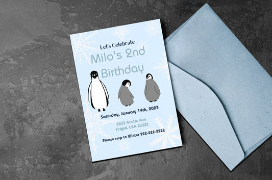 Blue Penguin Party Invitation | Penguin Party | Penguin Birthday | Penguin Baby Shower | Winter Party | Snowflakes