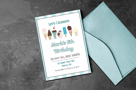 Blue Ice Cream Party Invitation | Ice Cream Party | Sprinkles | Ice Cream Birthday | Ice Cream Invitation