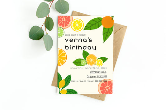 Citrus Party Invitation | Lemons | Party Invite | Lime | Digital Invite | Editable | Birthday Invite | Oranges | Grapefruit | Lemon Party