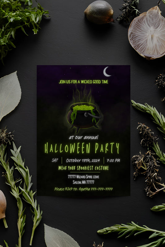 Witch Party Invitation | Halloween Invitation | Halloween Invite | Cauldron | Spooky | Halloween | October | Witchy | Halloween Party |