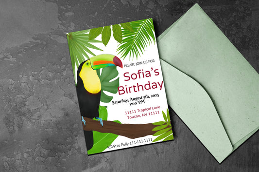 Toucan Party Invitation | Jungle | Digital Party Invite | Birthday| Shower| Tropical Birds | Birthday| Luau | Toucan | Leaves| Rainforest