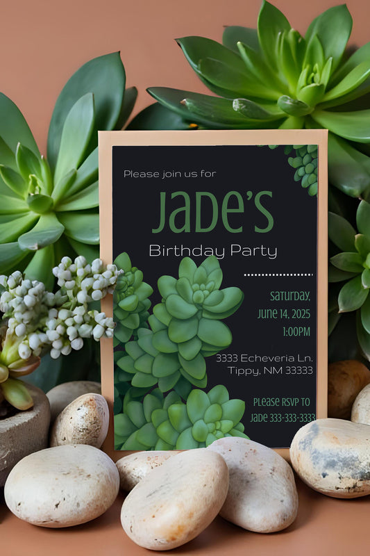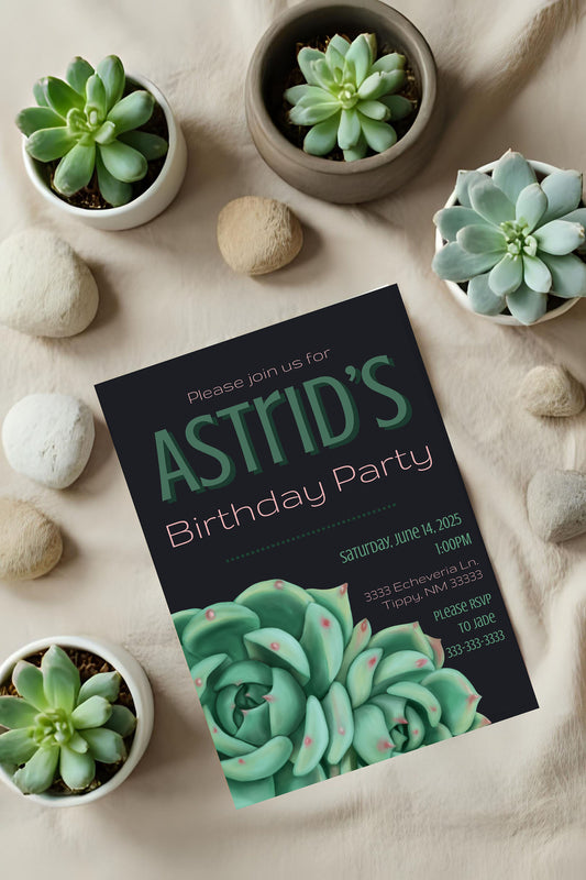 Dark Echeveria Succulent Party Invitation | Digital Party Invite | Birthday | Shower| Desert | Succulent party | Summer Birthday | Wedding