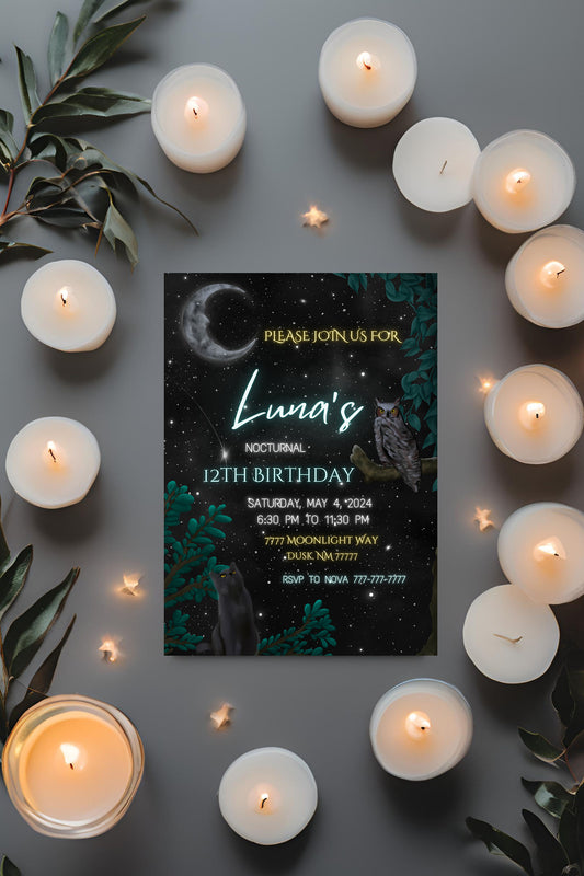 Nocturnal Party Invitation | Night Time Party | Night Forest |Sleepover | Forest | Stary Night| Halloween| Stars| Moon| Magical | Twilight