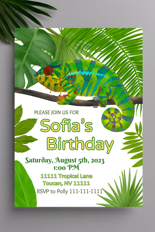 Chameleon Party Invitation | Rainforest | Digital Party Invite | Birthday| Shower| Tropical Animals | Birthday| Luau | Jungle | Leaves