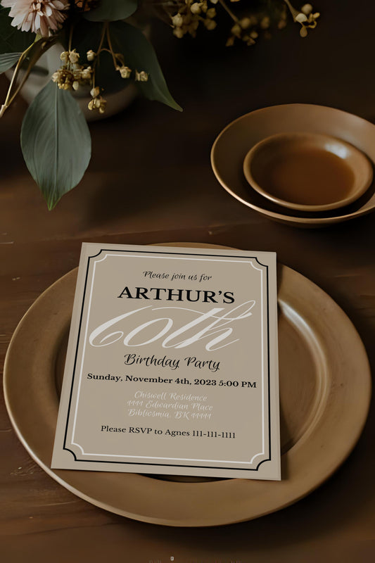 Old style Party Invitation | Simple Party Invitation | Digital Party Invite | Birthday| Party| Birthday| Men's Birthday | Book Lover | Moody