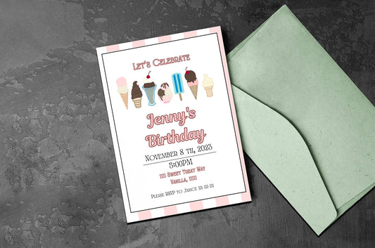Pink Ice Cream Party Invitation | Ice Cream Party | Sprinkles | Ice Cream Birthday | Ice Cream Invitation