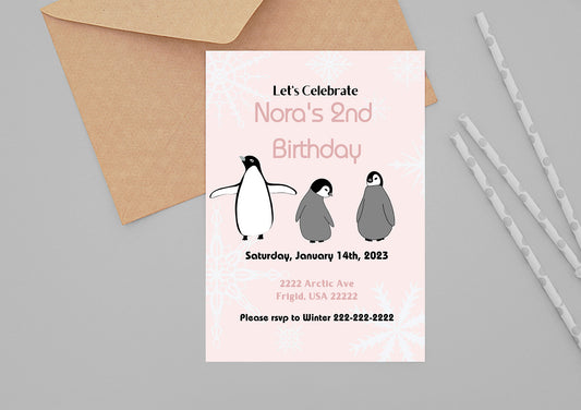 Pink Penguin Party Invitation | Penguin Party | Penguin Birthday | Penguin Baby Shower | Winter Party | Snowflakes